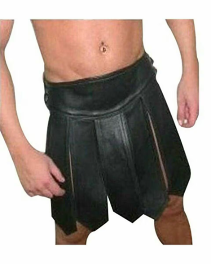 Designed with a gladiator-style look, this kilt is perfect for anyone looking to make a bold and daring fashion statement. The leather material and intricate detailing give the kilt an edgy and masculine appearance, while the traditional kilt design ensures that it remains timeless and classic.