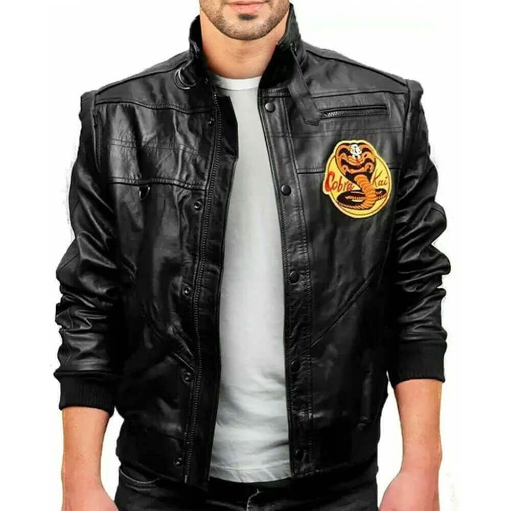 Experience the iconic style of Johnny Lawrence with the Cobra Kai Black Leather Jacket from The Karate Kid. This sleek and edgy piece captures the essence of the legendary character, blending attitude with martial arts flair. Elevate your fashion game and channel the spirit of Cobra Kai in this bold and timeless jacket.